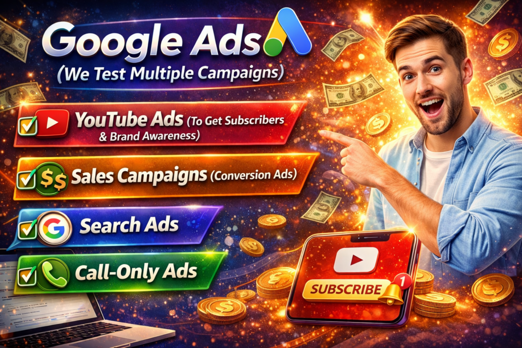 We run YouTube ads to build brand authority, increase visibility, and generate subscribers — which later helps in retargeting and lowering lead costs.