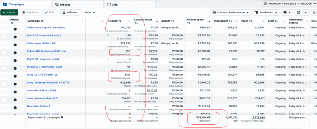 we generated over 8 lakh rupees by leveraging a blend of awareness, Meta ads, WhatsApp lead forms, and conversion campaigns. Our strategic approach also includes targeted website campaigns to ensure maximum impact and growth.”